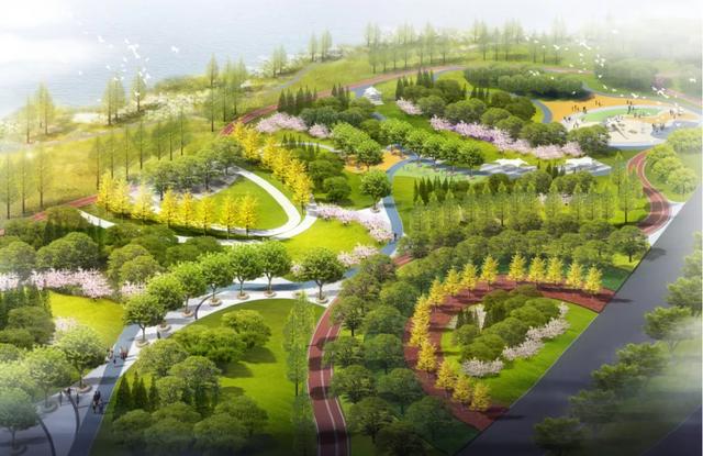 市城管中心工程建设科负责人李专介绍,黄山公园依山临水,利用园内斜坡地形,营造出了上下三层阶地。可以远眺欢快悦动的流水,可以徜徉周边亲水绿道、游玩步道,可以静看鲜花绿树融为一体,让人仿佛置身于一幅美丽的图画中。两条绿道贯穿南北,在园内形成环状游览线路,是贯穿全园的交通骨架。
