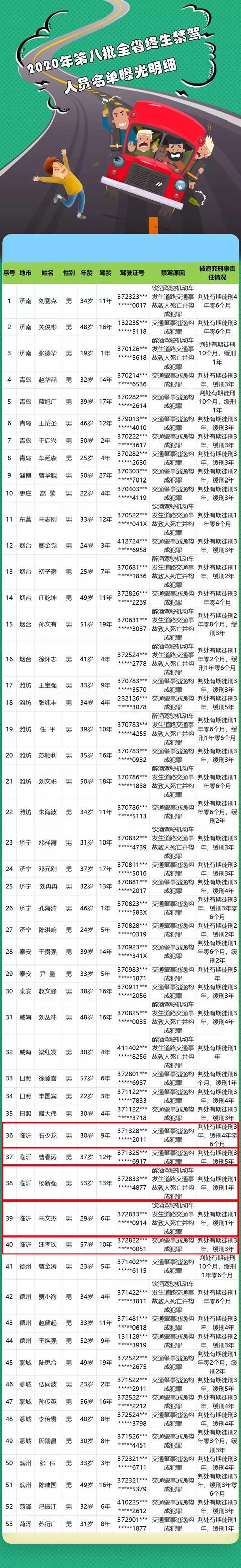 山东省公安厅交通管理局向社会公开发布今年第八批终生禁驾名单,53人“榜上有名”。其中临沂有5人。
