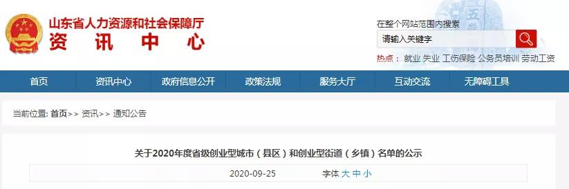 现将认定结果在山东省人力资源和社会保障厅官方网站进行公示,公示期为2020年9月25日至9月30日止。如有异议,可在公示期内向省创建工作领导小组办公室反映。监督电话:0531—81769633。