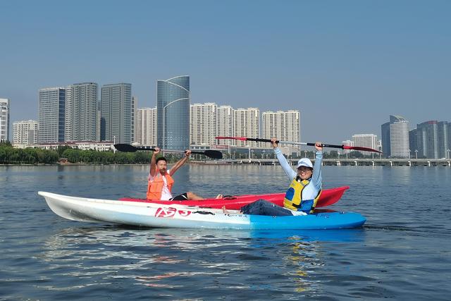 秋高气爽人舒畅,沂河赛艇意未央。27日上午,沂河南湖心岛再次热闹起来,作为本届2020“划遍临沂”皮划艇联赛压轴赛事活动,“我们的节日·中秋节”主题皮划艇赛事再度相聚了百余名来自各行各业的水上运动爱好者。“好好珍惜这场比赛!一定要拿个名次,赢一份大奖当做自己中秋节的礼物!”皮划艇运动爱好者韩先生是今年才开始接触这项运动,从开始尝试体验,到几乎每天都来训练,再到后来加入到皮划艇俱乐部,他觉得不仅从身体状况开始发生变化,整个人的精气神都有了很明显的改变。“有朋友问我,今年的气色咋这么好?我会自豪的告诉大家,‘划船划的!’”韩先生说,在他的影响下,已经有好几个人也参与到这个项目中,成为皮划艇运动的忠实爱好者。