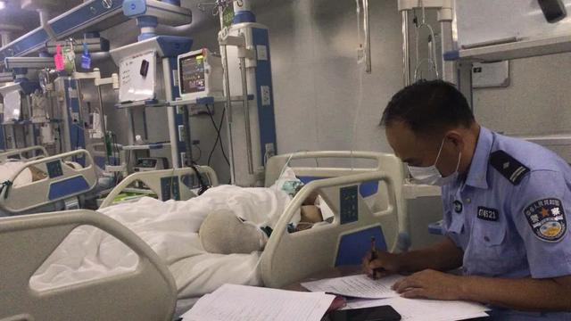 经初步了解,受伤者梁先生是被跟他一起就餐的陶某捅伤的,民警随即将陶某带回所内。为了尽快全面掌握事件缘由,民警李崔法天不亮就带领值班辅警来到人民医院,向受伤者调查了解当晚情况。