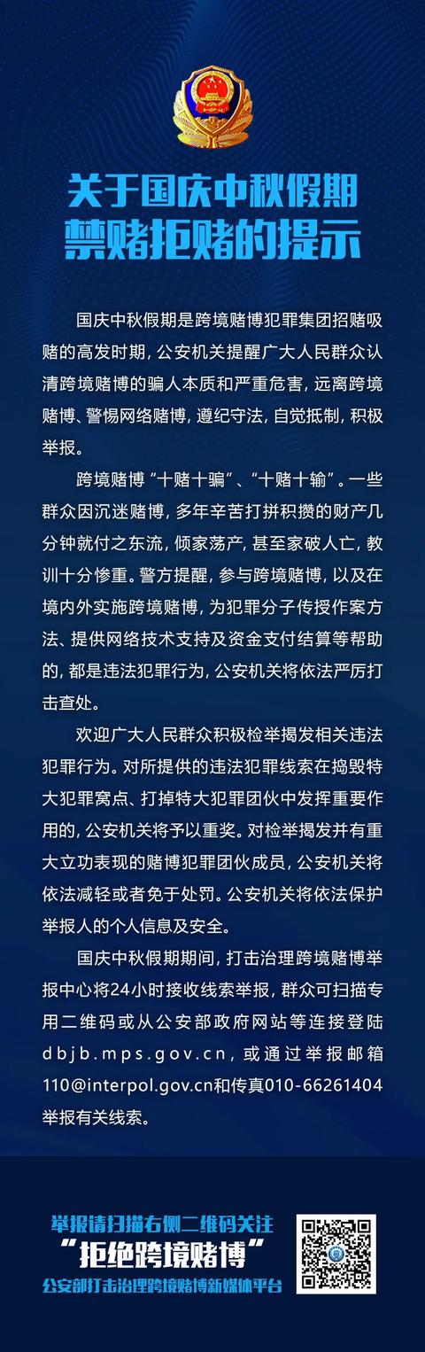 关于国庆中秋假期禁赌拒赌的提示!