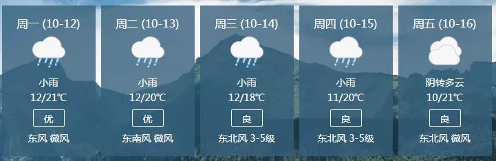 11日夜间到12日白天,阴部分地区有小雨转多云,东北风3~4级,气温15~21℃。