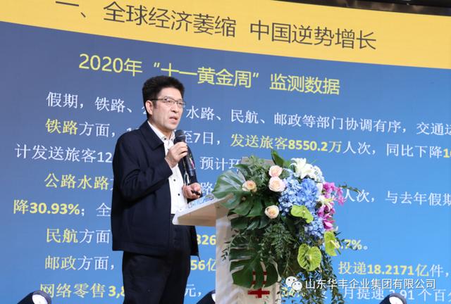 华丰集团党委书记、董事长郁新闻致欢迎辞。他代表华丰集团,向莅临会议的各位领导、各位嘉宾表示最热烈的欢迎!郁新闻说,华丰集团是临沂商城的发源地,也是临沂创办市场的试验田。上世纪80年代初,华丰集团创办了临沂服装鞋帽市场,开创了沂蒙山区创办市场之先河。回顾走过的风风雨雨,我们十分感恩党的好政策,感恩各级领导和社会各界的鼎力相助,感恩集团一万多家商户的奋力拼搏。