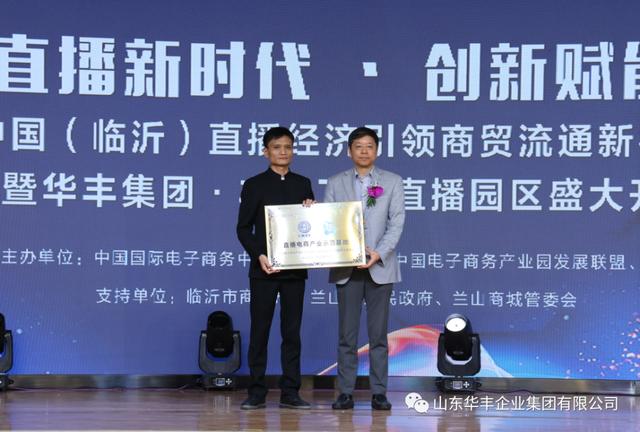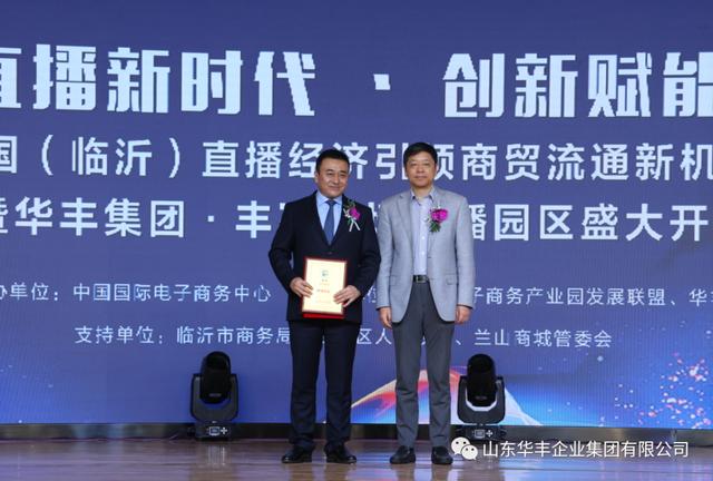 中国国际电子商务中心副主任、中国电子商务商业园发展联盟理事长陆建栋为华丰集团成为中国电子商务产业园发展联盟理事单位和丰幂工场电商直播基地为直播电商产业示范基地颁牌。