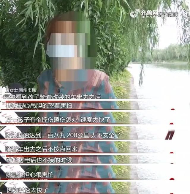 “每次看到孩子骑着改装的车出去之后,我就提心吊胆的害怕,万一孩子有个磕伤摔伤怎么办,时速太快了,改装时速达到一百八九,200公里,太不安全了,骑着车出去之后不按点回来,打电话也不接的时候,就是很担心很害怕,因为时速太快了。”青州市民唐女士告诉记者。