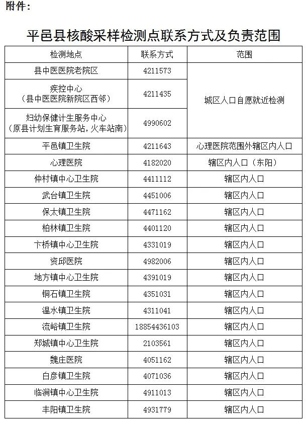 三、核酸检测方式:按照属地管理原则,各镇(街道)待检人员由各镇卫生院划定独立、空旷区域对待检测人员进行采样;物业小区和机关企事业单位人员由县疾控中心负责采样(具体范围见附件)。待检测人员要自驾或专车接送前往检测地点,全程佩戴口罩,与他人保持距离,严禁乘坐公共交通工具前往。