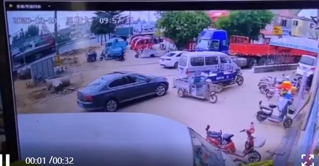 大众车驾驶员在确定车辆刮伤并不是很严重,心想自己修修就没事了。便将电动三轮车推回原位置停稳后,驾车开到了斜坡下的路边上。没成想刚喝了一口水。“哐当——”一声,电动三轮车绕了一大圈竟然又溜车撞在了自己车的车尾部,这是多么大的缘分,才能让两车再次相遇!