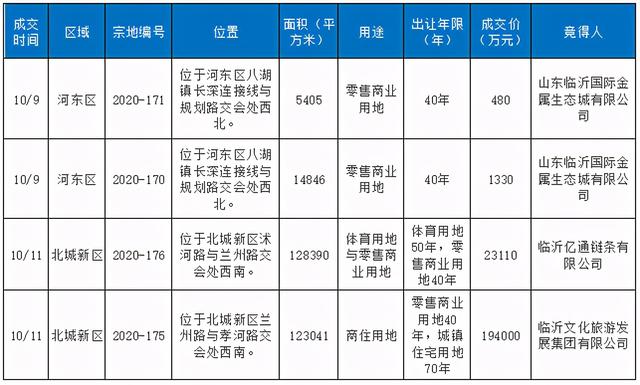 临沂近期又有几宗土地已出让