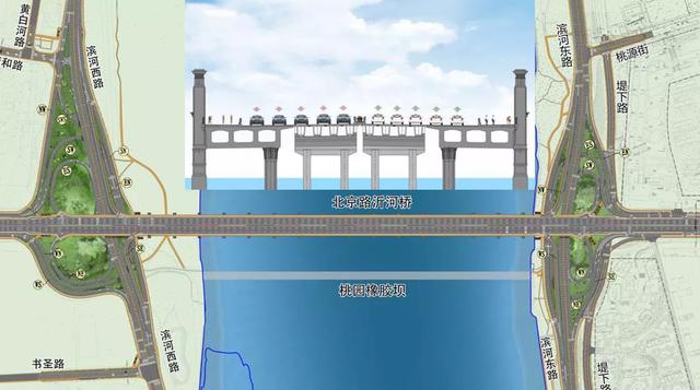 北京路沂河桥及两岸立交改造工程西起北京路柳青河桥东桥头,东至滨河东路立交匝道结束处,全长1792米。