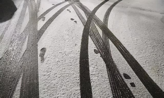 冰雪路面湿滑会导致刹车制动距离变长,制动时容易引发追尾事故。