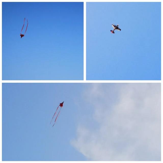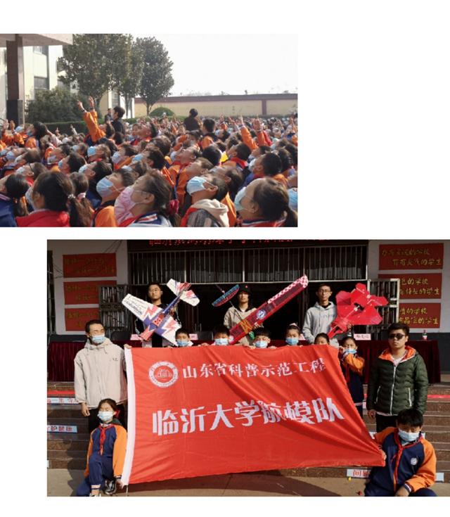 开幕仪式结束后,临沂大学航模队为大家带来了精彩的航模放飞表演,同学们的热情瞬间高涨,看着一架架模型飞机腾空升起,或在空中追逐翻转,或俯身低回盘旋,大家纷纷欢呼起来,手指着,目光追随着,尖叫声此起彼伏,无不感叹着科学技术的神奇与奥秘。