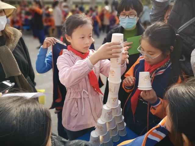 科创节活动的重头戏——创新游戏比赛由纸杯叠高、纸飞机掷远、魔方还原、纸桥承重、纸条有多长、鸡蛋撞地球六个项目组成。