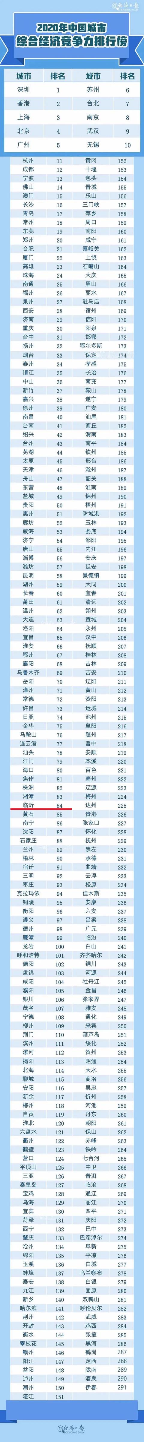 291个城市中,临沂在综合经济竞争力排名第84位。