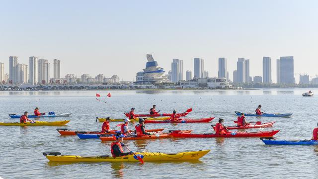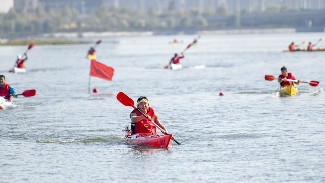 临沂在线讯(记者 刘莲 通讯员杨鹏 刘畅)挑战自我、超越极限、永不放弃!10月24日上午,第九届中国沂河体育节自主策划赛事活动——首届“红色沂蒙”皮划艇马拉松挑战赛在滨河景区风帆广场举行。近200名来自临沂社会各界的皮划艇运动爱好者和2020年全市皮划艇教练员培训班的45所院校80余名体育教师齐聚沂河岸边,通过五个独具红色魅力的皮划艇比赛项目,为美丽的金秋增添了色彩,更是把皮划艇项目与新时代沂蒙精神紧密结合,进一步引领全民健身新风尚、促进青少年健康发展,展示我市水上运动蓬勃发展的新气象。