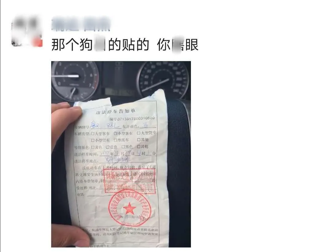 经查,2020年9月24日17时许,违法行为人徐某将车停放在高新区湖北路南侧盲道,被高新区交警大队民警开具违停告知单,徐某发现后将违停告知单拍照并附上辱骂民警的话,发布到微信朋友圈。