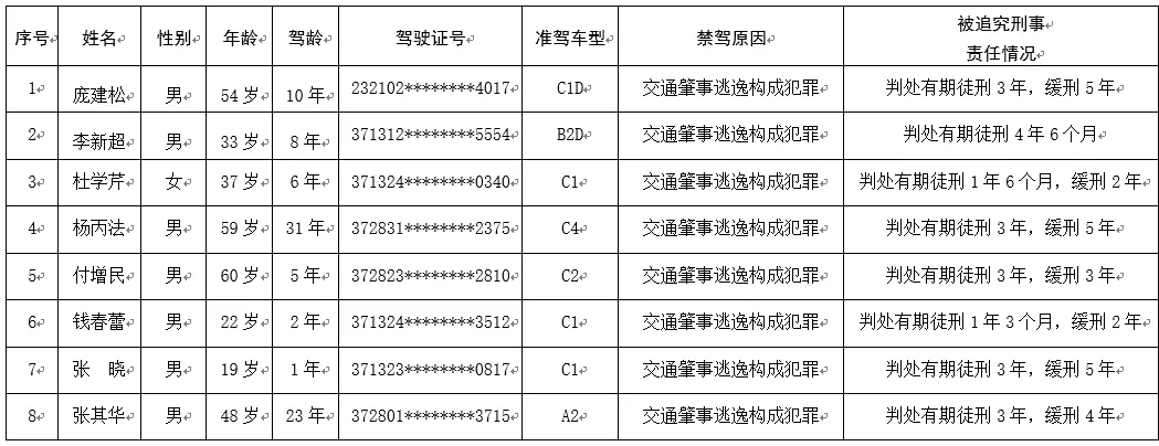 为进一步加强对交通参与者的警示教育,临沂市公安局交警支队再次发布终生禁驾人员名单,共8人,希望广大驾驶人能从中吸取教训,依法安全行车。