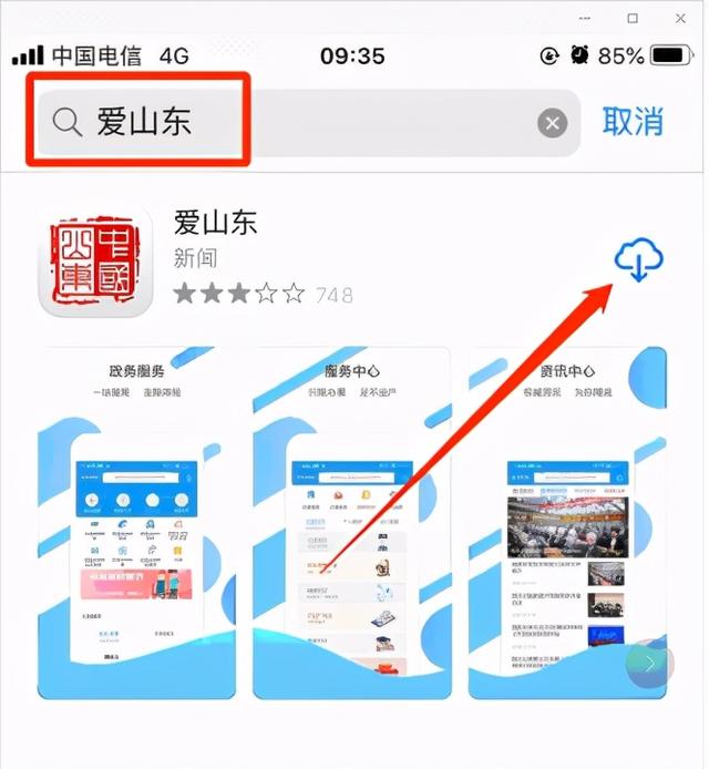 在手机应用市场中,搜索“爱山东”APP,并下载安装。