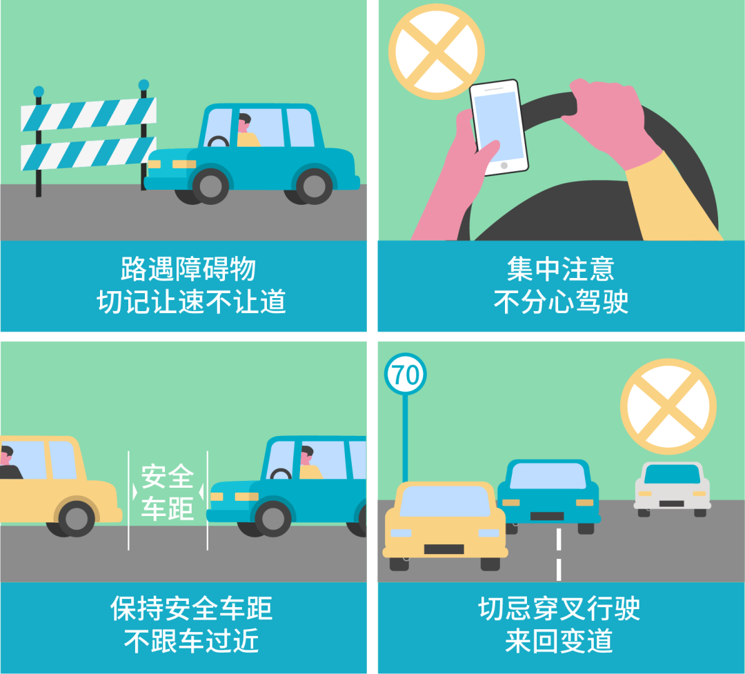数据显示,在干燥水平路面上,时速为80公里时,制动距离约为70米,时速为100公里时,制动距离达到101米,而时速为140公里时,制动距离达到173米!当前车遇到紧急情况刹车时,同车道后车如超速行驶,则极易发生追尾事故。