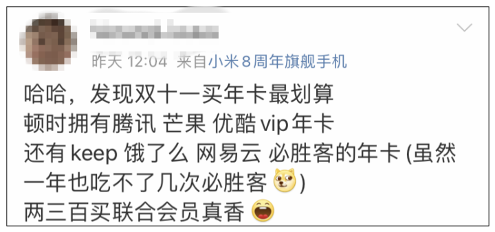现如今,刷剧、听音乐、点外卖、购电影票、健身……不买几个会员,可能就享受不到各种折扣和福利。也因此,当这些联合会员在双11期间开售,微博、豆瓣、知乎等社交平台上,出现了不少讨论:××的买1得×到底划不划算?要不要买?