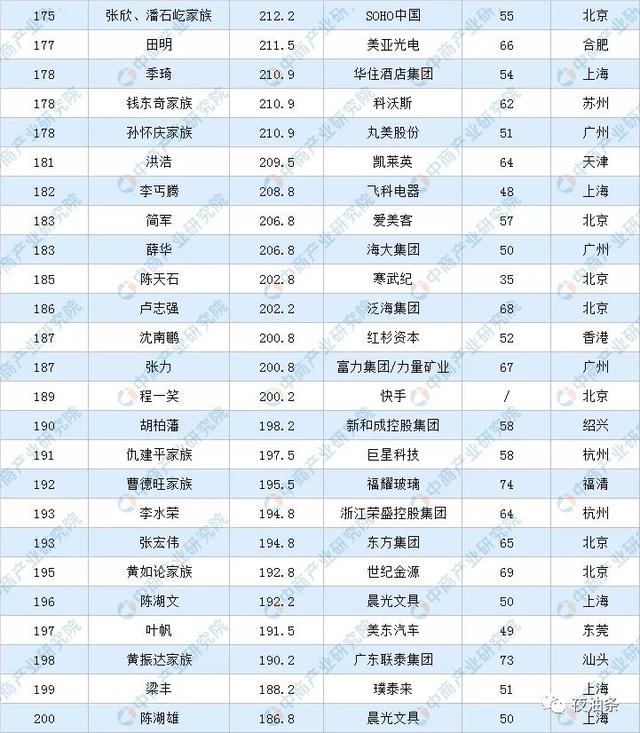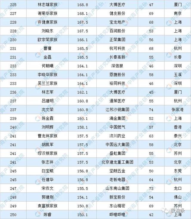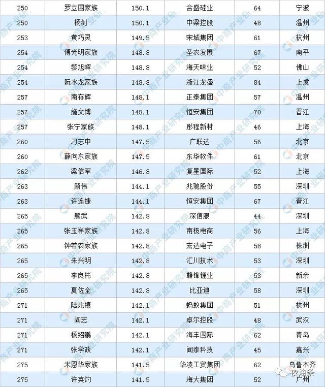 太阳纸业的李洪信家族以 170.1 亿元财富排名223位,以海运为主的海丰国际杨绍鹏 以142.1 亿元排名第271 位。南山集团的宋作文以155.5亿元财富排名247位。