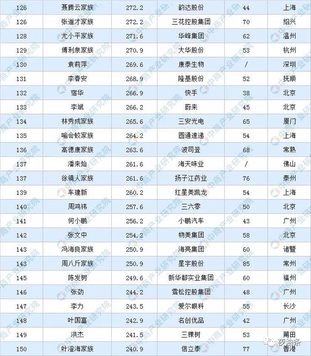其他上榜的还有信发集团的张学信家族(114.1亿元),光威复材的王言卿家族(110.1亿元)。
