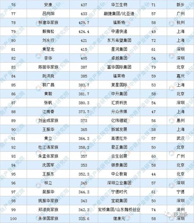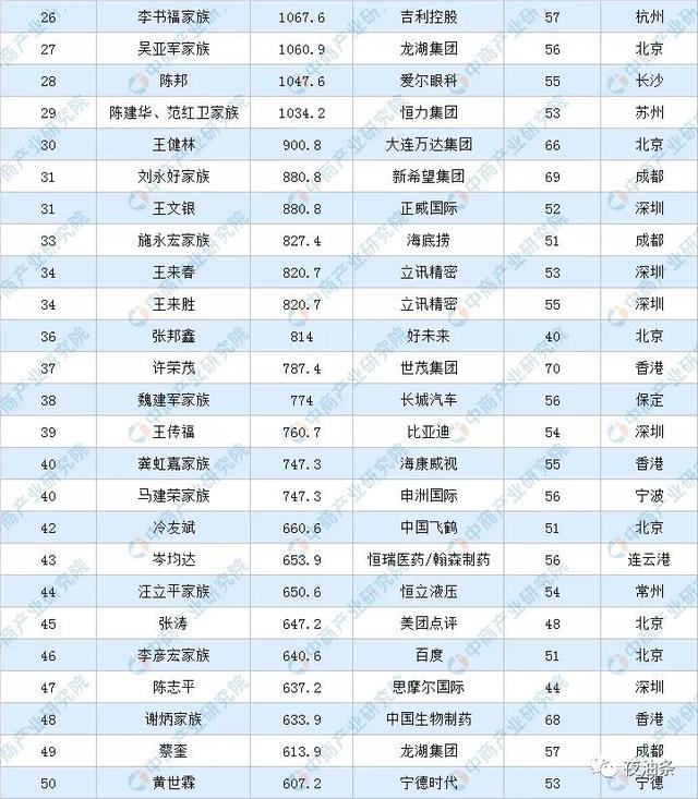 从富豪居住城市分布来看,北京上榜富豪最多有64位,上海、深圳各有42位富豪上榜,杭州上榜富豪35位,广州上榜富豪24位,香港上榜富豪14位,佛山、宁波各有10位富豪上榜。