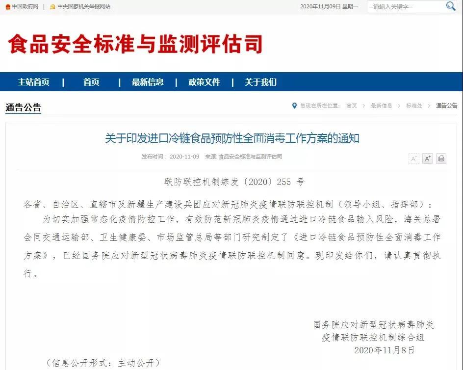 据国家卫健委网站消息,近日,国务院应对新型冠状病毒肺炎疫情联防联控机制综合组发布《关于印发进口冷链食品预防性全面消毒工作方案的通知》(以下简称通知)。