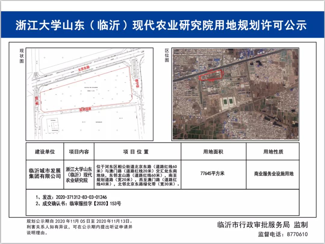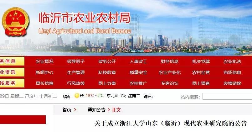 根据《临沂市人民政府浙江大学合作共建浙江大学山东(临沂)现代农业研究院协议》和《临沂市人民政府关于同意成立浙江大学山东(临沂)现代农业研究院的批复》(临政字[2019]131号),浙江大学山东(临沂)现代农业研究院正式成立。现将有关事项公告如下: