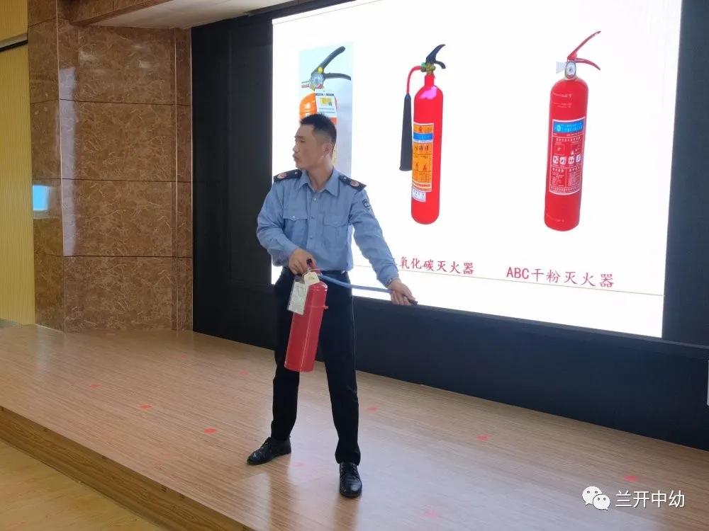 在讲解过后,郁教官向参会的园长和老师们介绍了消火栓、灭火器的结构组成、类型,着重强调了灭火器、灭火毯的使用及注意事项,并为老师们做了示范操作,教老师们正确使用。