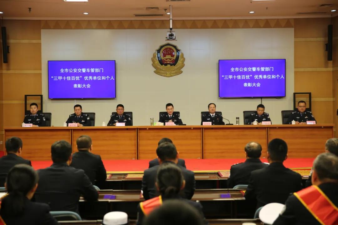 11月14日上午,临沂市公安局交通警察支队隆重召开全市公安交警车管部门“三甲十佳百优”优秀单位和个人表彰大会,表彰全市公安交警车管部门“三甲十佳百优”先进单位及个人,总结经验,凝聚心力,部署进一步推动全市车管工作取得新成效、实现新发展。市公安局党委委员、交警支队长张大农同志出席会议并讲话,交警支队党委委员、高速支队长成泽普同志主持会议。受表彰代表,交警支队车管所全体民警、辅警,警企合作单位负责人、媒体记者在主会场,交警支队各区县大队长,分管负责人及车管所全体民警、辅警,社会合作单位代表在分会场参加会议。