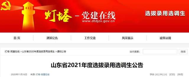 “灯塔-党建在线”网站为本次选调工作的报名网站,考生成绩查询、面试通知等通知要求,请登录该网站查询。报名期间,每天公布各岗位报名情况。