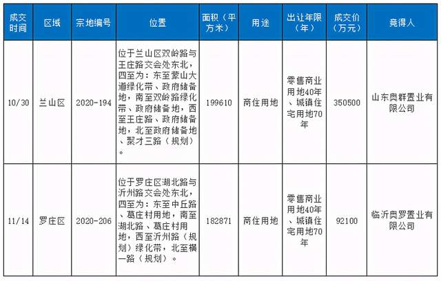 11月13日—11月19日,全市共2个区成交土地2宗,共计573.73亩,均为商住用地。