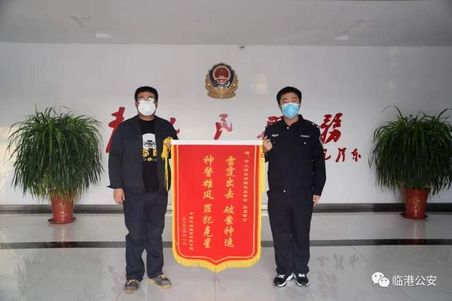 11月14日,莒南县坪上镇某项目部负责人张某来到临港公安分局坪上派出所,送来了一面写着“雷霆出击 破案神速,神警雄风 罪犯克星”的锦旗。