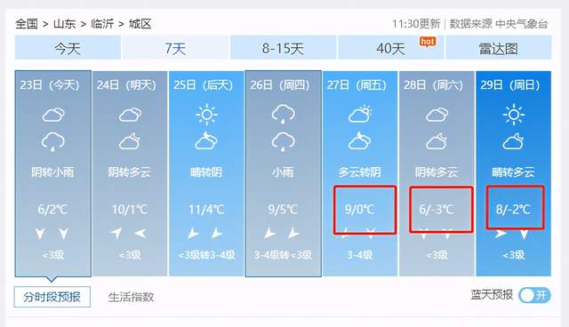临沂市气象台今天下午发布的天气预报显示