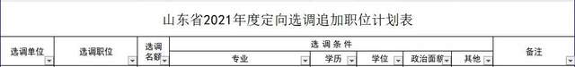 为进一步加大2021年度选拔录用选调生工作力度,经研究,决定追加定向选调职位计划(具体职位计划附后),报名、考试等程序按照《山东省2021年度选拔录用选调生公告》执行。