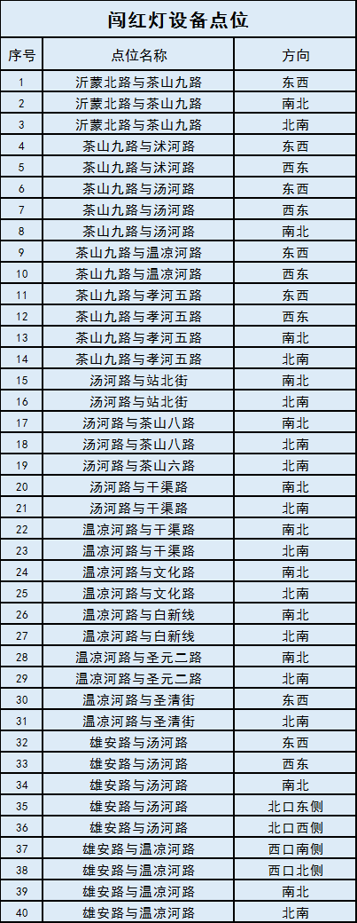 为进一步加强辖区道路交通安全管理工作,规范行车秩序,有效预防和减少重特大道路交通事故发生,保障道路安全、畅通、有序,临沂市公安局交警支队高铁(火车站)区域大队将新增的46处电子警察设备(闯红灯设备40处,违停抓拍设备6处)点位予以公示。据了解,新增设备将于2020年12月15日0时起,正式投入使用。