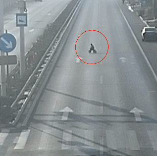 他迅速跑到路中央截住了这个三岁的小“驾驶员”。