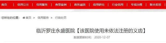 违法行为类别:该医院使用未依法注册的义齿