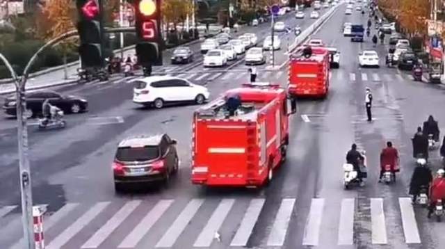 2020年11月5日7时45分,郯城县城郯东路与古城路路口,两辆消防车由北向南经过该路口时遇到红灯,前面有一辆车牌号为鲁Q99A9W的商务车在左转弯道第一位等待通行。发现后方执行任务的消防车后,鲁Q99A9W号轿车立即向前开越过斑马线后向左打方向,为消防车让出了顺利通过的空间。