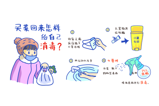 购物后首先对外包装表面进行消毒,随后进行手部清洁与消毒。双手不碰触口、鼻、眼等部位。