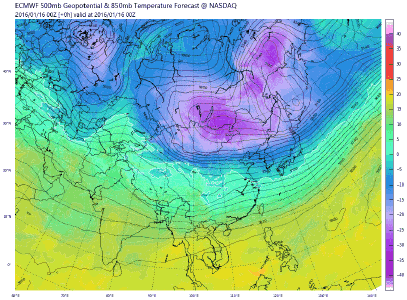 2016年北极涡旋的位置偏西、偏南,更靠近我国大陆,直达渤海附近!另外涡旋覆盖范围集中,主要影响我国地区。