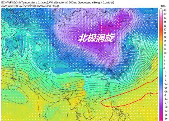 而2020年位置偏东、偏北,纬度更高,位于俄罗斯,接近我国东北地区,涡旋覆盖范围大。从北极涡旋来看,今年的位置、强度等因素与2016年相比,不太有利于生成“霸王级寒潮”。