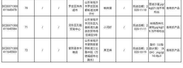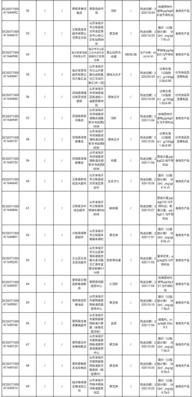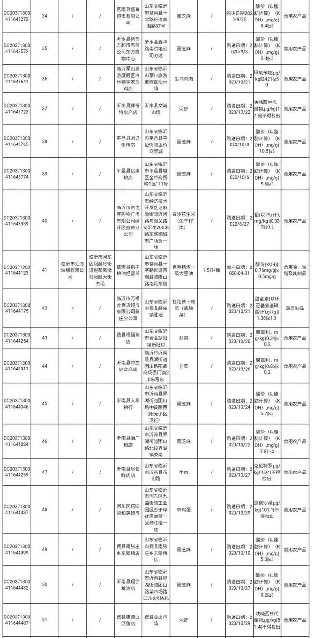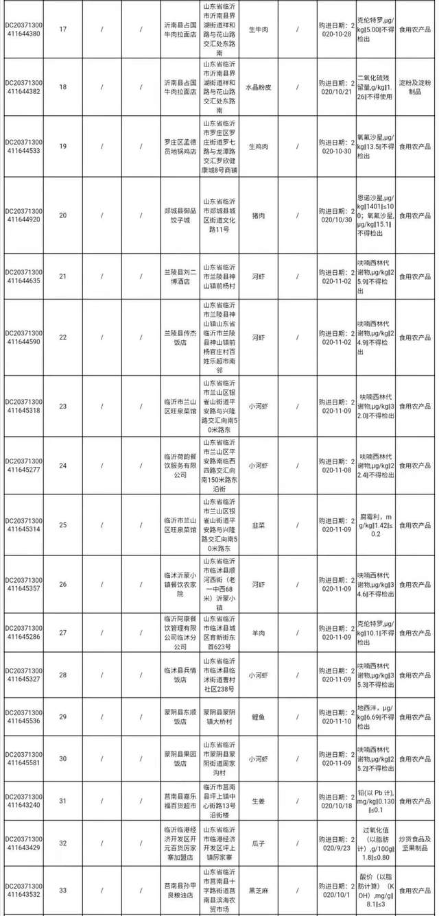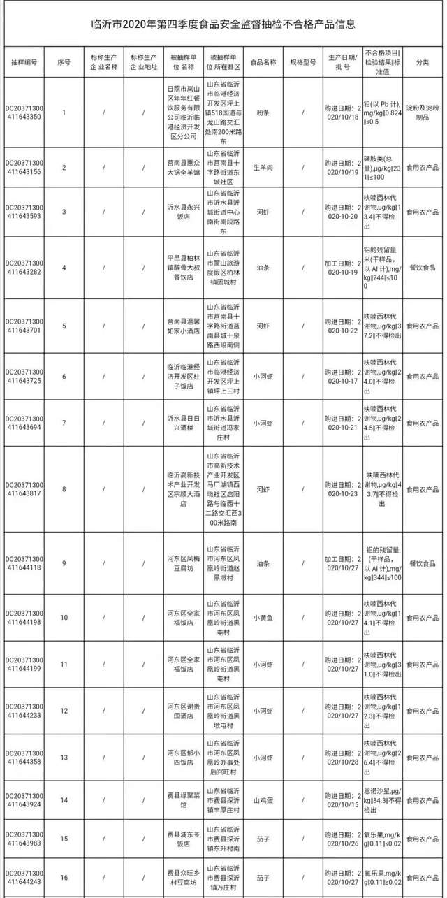 临沂市2020年第四季度食品安全监督抽检信息通告