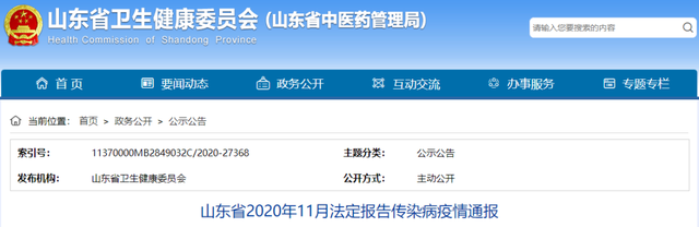2020年11月(2020年11月1日0时至11月30日24时),全省无甲类传染病发病、死亡报告。