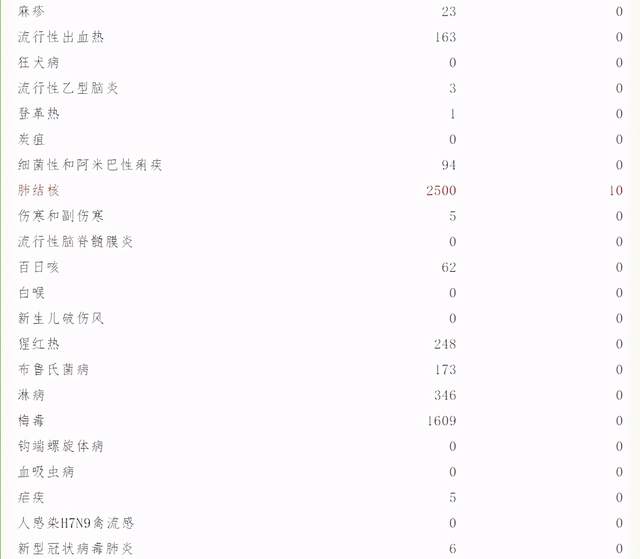 27种乙类传染病中,传染性非典型肺炎、脊髓灰质炎、人感染高致病性禽流感、狂犬病、炭疽、流行性脑脊髓膜炎、白喉、新生儿破伤风、钩体病、血吸虫病、人感染H7N9禽流感无发病、死亡报告,其余16种传染病共报告发病12664例,死亡31人。报告发病数居前3位的病种依次为病毒性肝炎、肺结核、梅毒,占乙类传染病报告病例总数的90.05%。