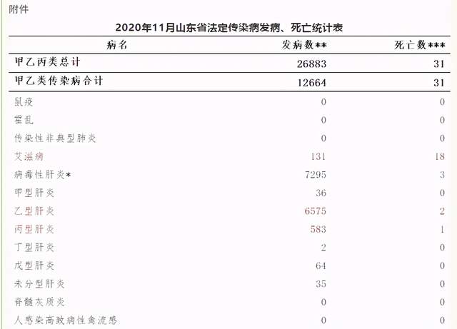 11月份,全省共报告法定传染病26883例,死亡31人。