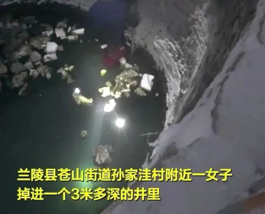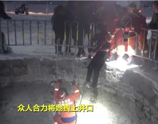 12月29日下午,临沂兰陵县苍山街道孙家洼村附近,一女子掉到3米多深的井里,井口周围围满了焦急的群众。