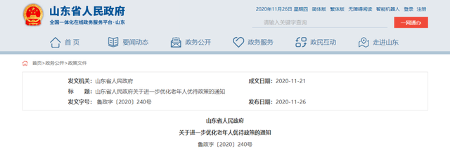 为深入贯彻落实习近平新时代中国特色社会主义思想和党的十九大精神,积极应对人口老龄化,更好地让老年人分享经济社会发展成果,不断提高老年人的获得感、幸福感、安全感,依据《中华人民共和国老年人权益保障法》《山东省老年人权益保障条例》,结合我省实际,现就进一步优化老年人优待政策通知如下: