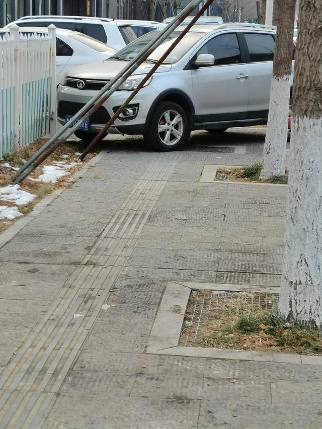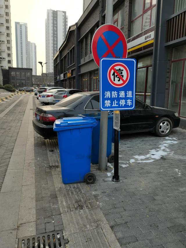 石板街上违停的以私家车为主,占盲道、占人行横道、有的甚至还直接停到了街道上,从沂州路走到考棚街,记者就看到很多辆车停在街道两旁,感觉这里都快变成停车场了,甚至有的车直接就停在消防通道旁边。